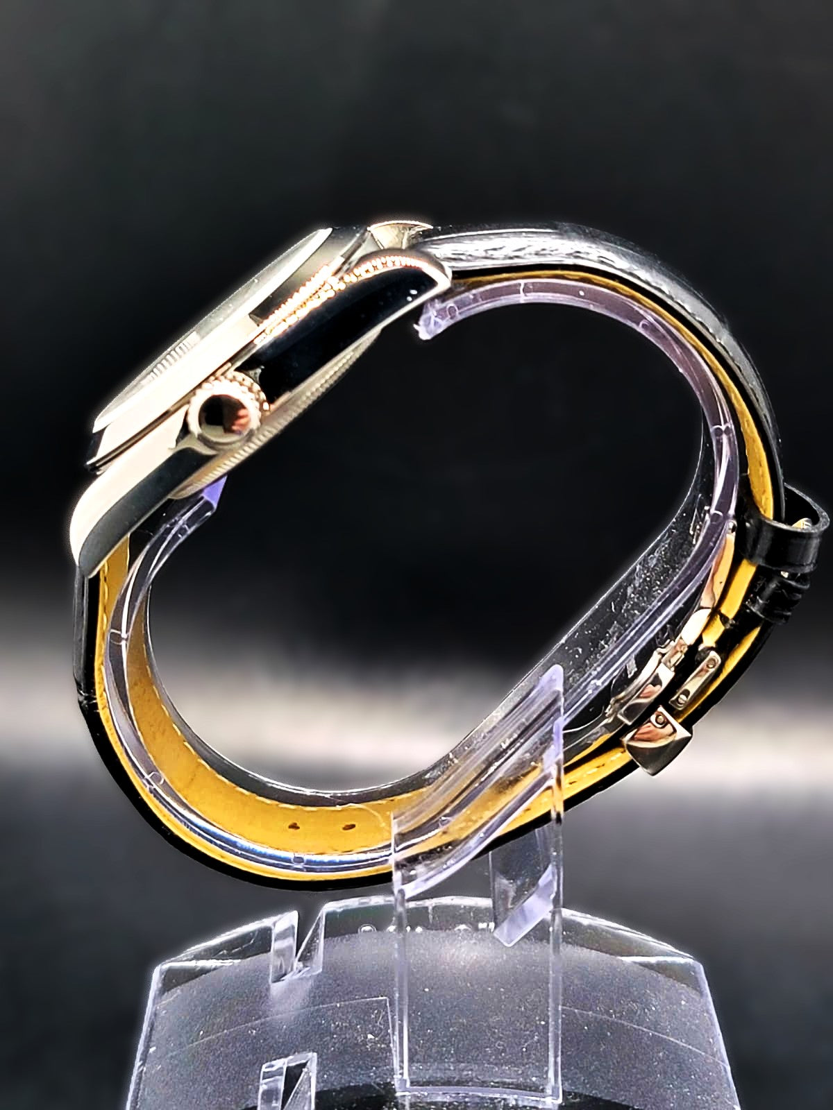 CUSTOM MOD Grand Seiko Heritage White Textured GMT Automatic NH34 GMT Movement on Black leather band with butterfly clasp.