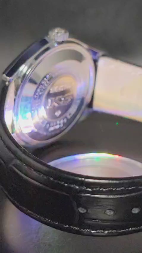 Driven by the Suwa Seikosha 5625 calibre, this high-beat movement functions at 28,800 BPH. The mechanism has been professionally serviced, including disassembly, cleaning, and lubrication, resulting in reliable operation and accurate timekeeping. The quick-set date feature is fully operational.